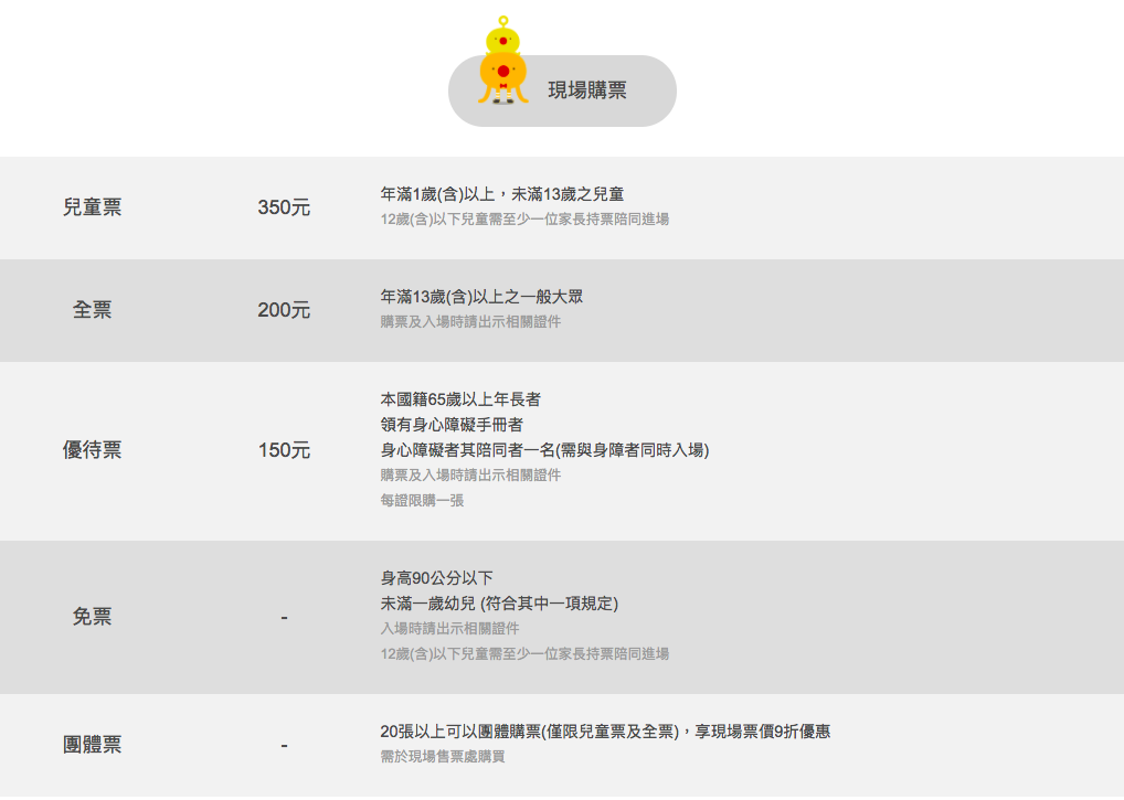 【8咘的搞怪樂園-彩虹慶典】票價如下: