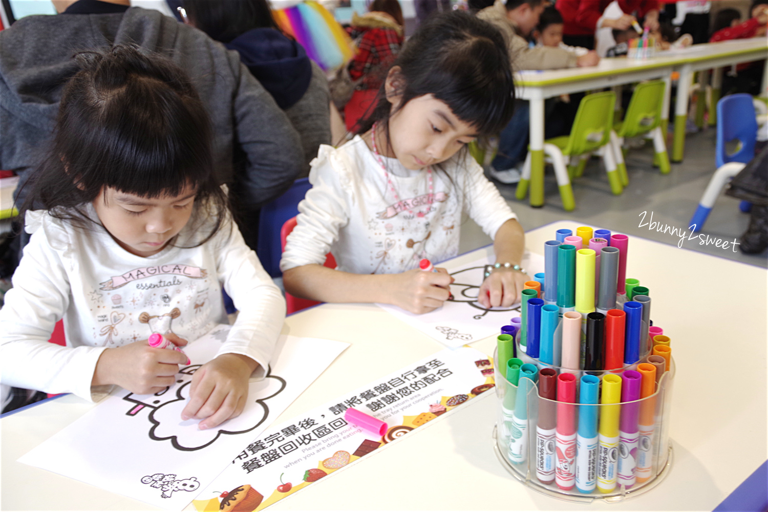 會有可愛的大姊姊來介紹現場提供的畫具,也會有著色紙張給小朋友們畫畫~