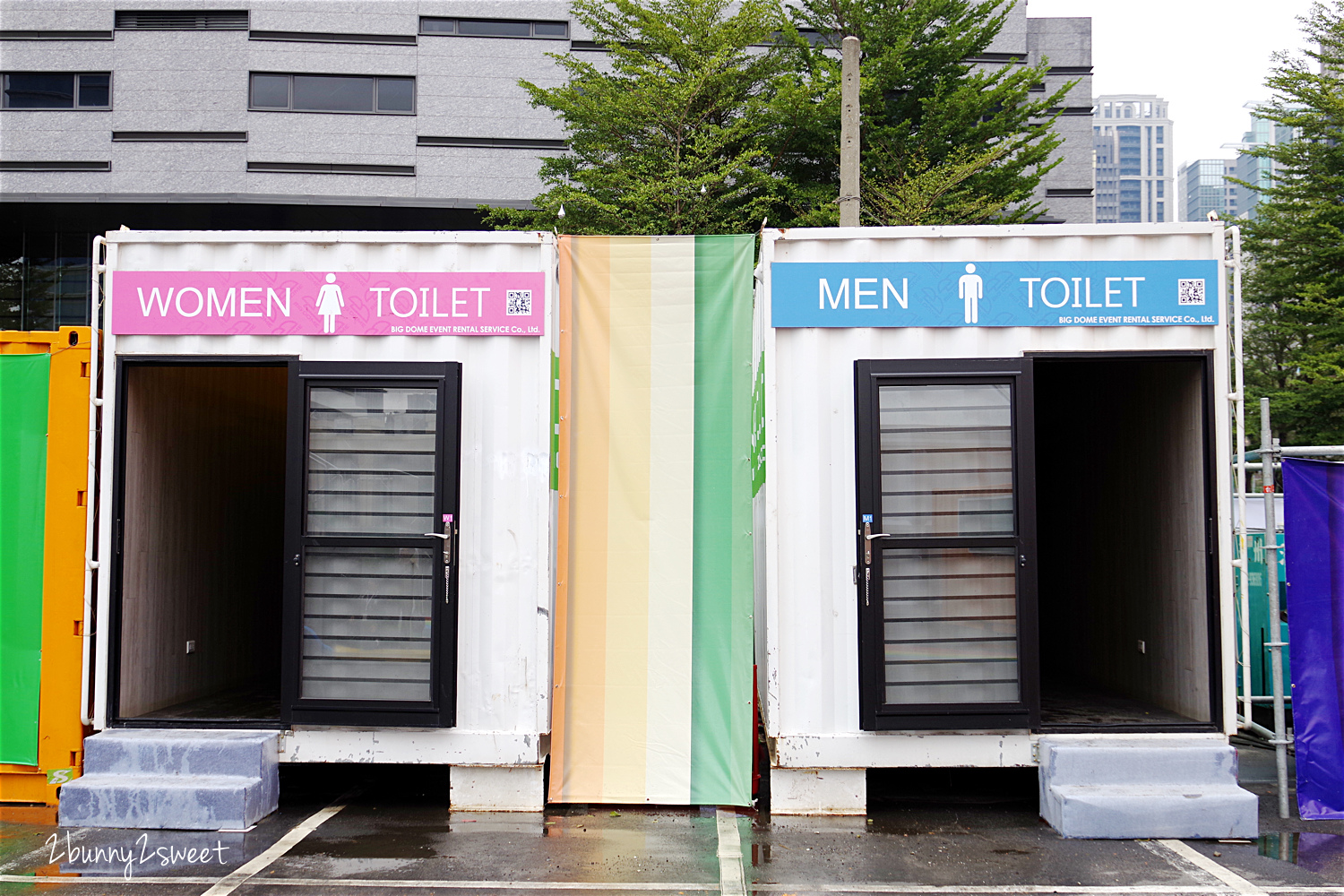 雖然一樣是臨時搭建的貨櫃屋廁所,但是女廁數量非常充足,總共有三個貨櫃啊!!