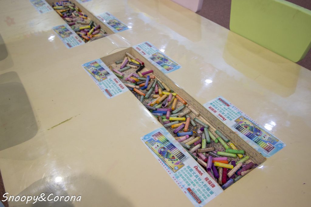 桌上準備了蠟筆小朋友們能夠坐下創造獨一無二的生日卡片,
