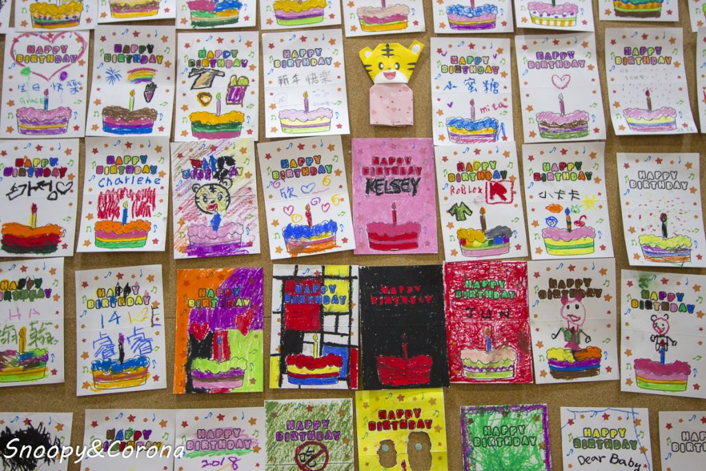 生日卡片創作完成可以貼在公佈欄上,真的好像教室的氣氛,呵呵