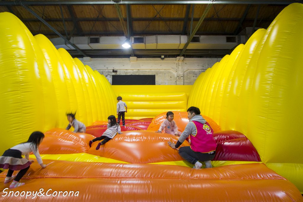 有最放電的氣墊沙坑,小朋友身高限制90-120cm要脫鞋著襪才能上去跳喔,