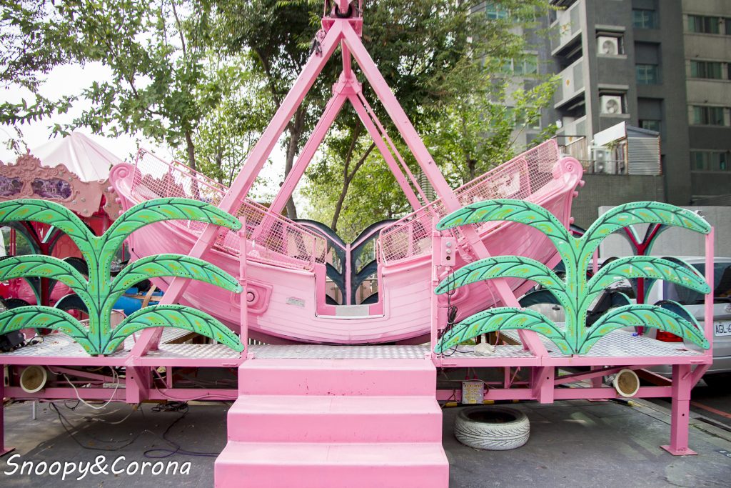 【草悟道粉紅樂園】的設施只有4項~摩天輪、小火車、海盜船和旋轉木馬,