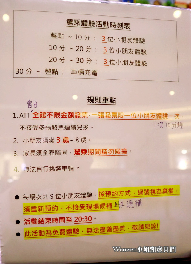 每梯次三位小朋友(年齡限制為3歲到8歲),可以駕駛汪汪隊主題電動車體驗十分鐘