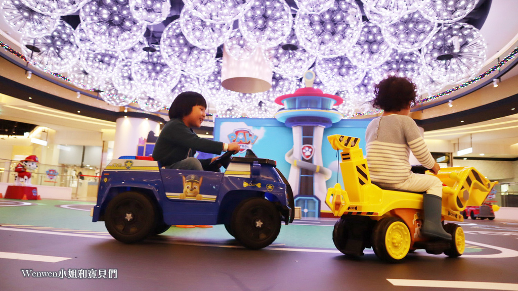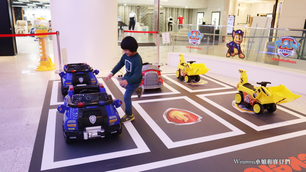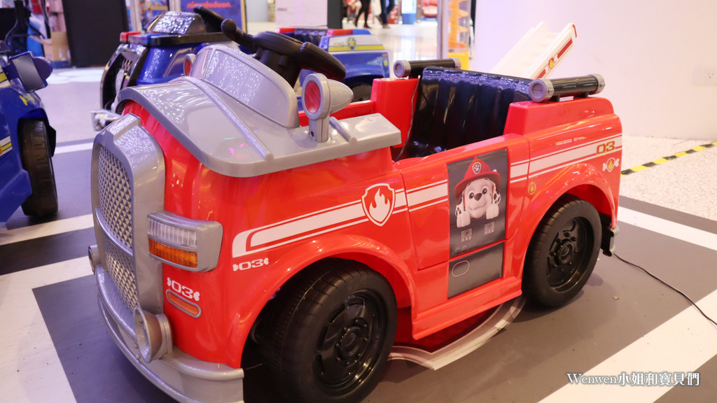 平常百貨公司開電動車十分鐘,至少都要$150起跳,還沒有汪汪隊造型的車車呢~