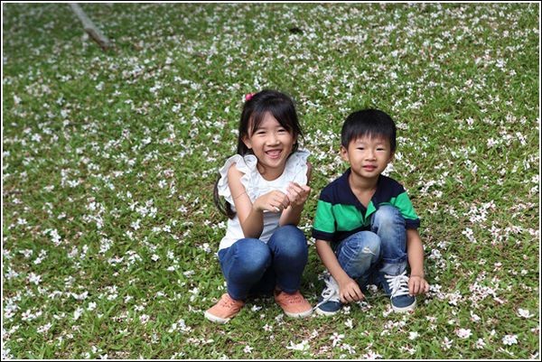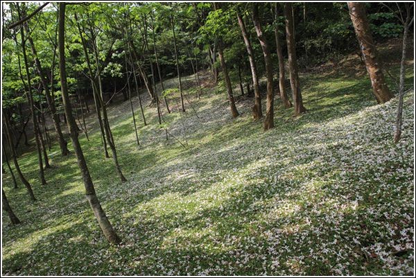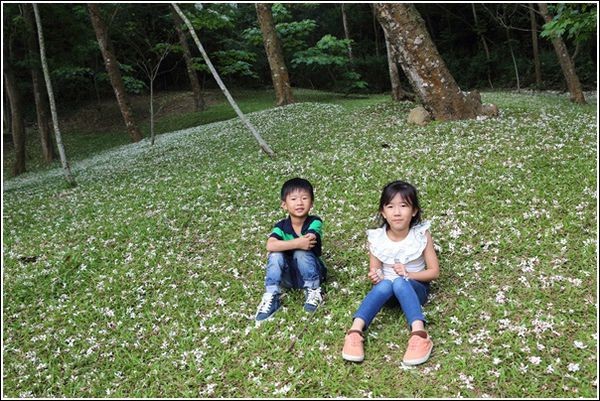 油桐花鋪成的白色地毯,成了拍照時最美麗的背景!