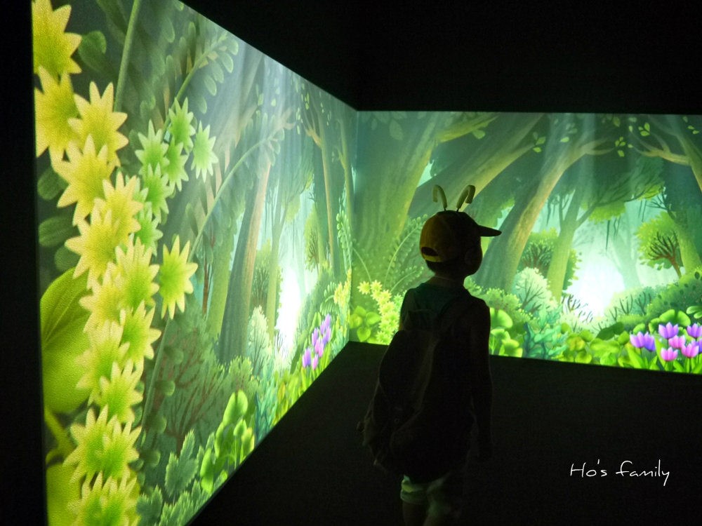 接下來,要開始參觀囉!3D科技打造的牆面,影像裡頭的花朵,會隨著人走過而盛開,有趣極了!