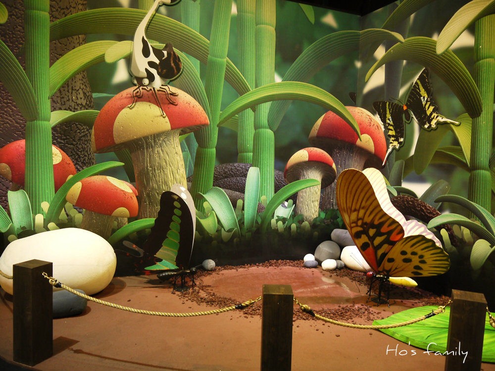 來到擬態生態區,可以看到剛剛走過的路徑以及森林的真實全貌,在這裡能夠找到多達50幾種昆蟲的標本呢!