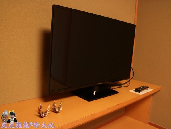 電視櫃上擺放了兩隻代表祝福的紙鶴,瞬間變成虎龍兄弟的玩具了