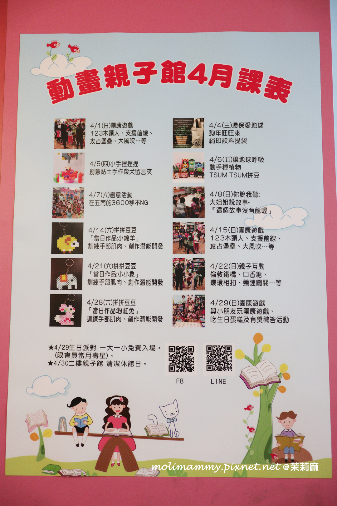每月也有不同的親子課程可以參加喔