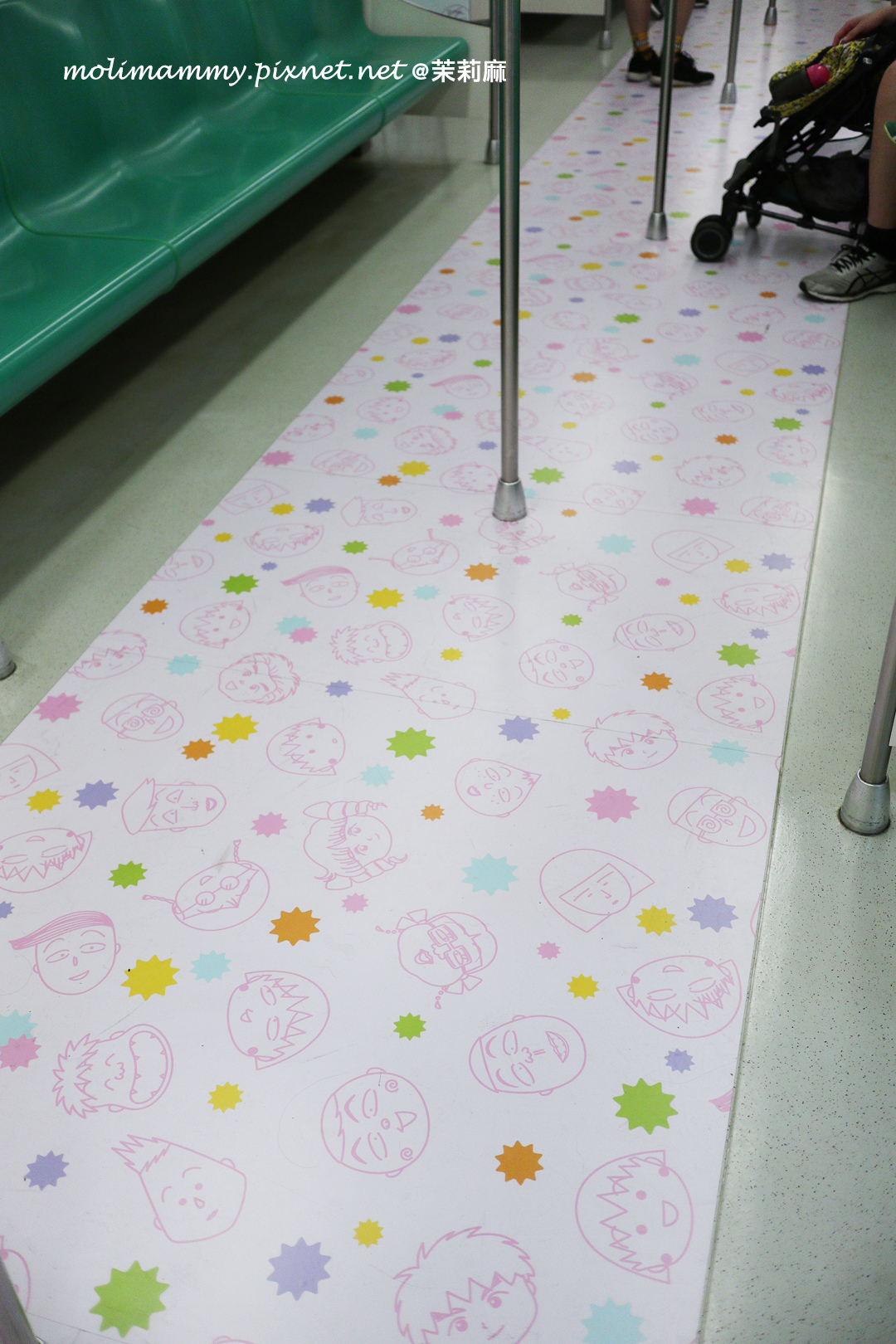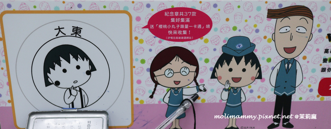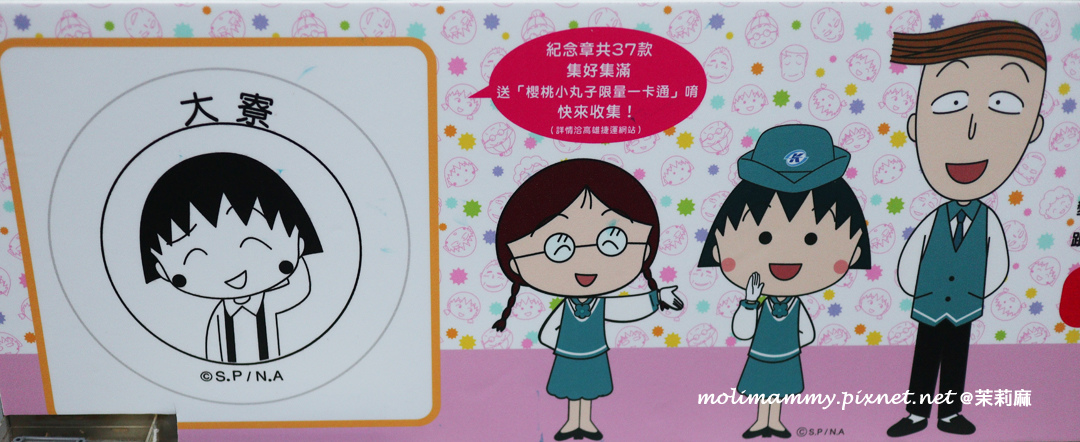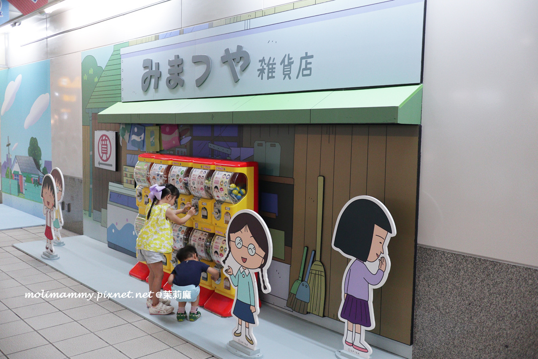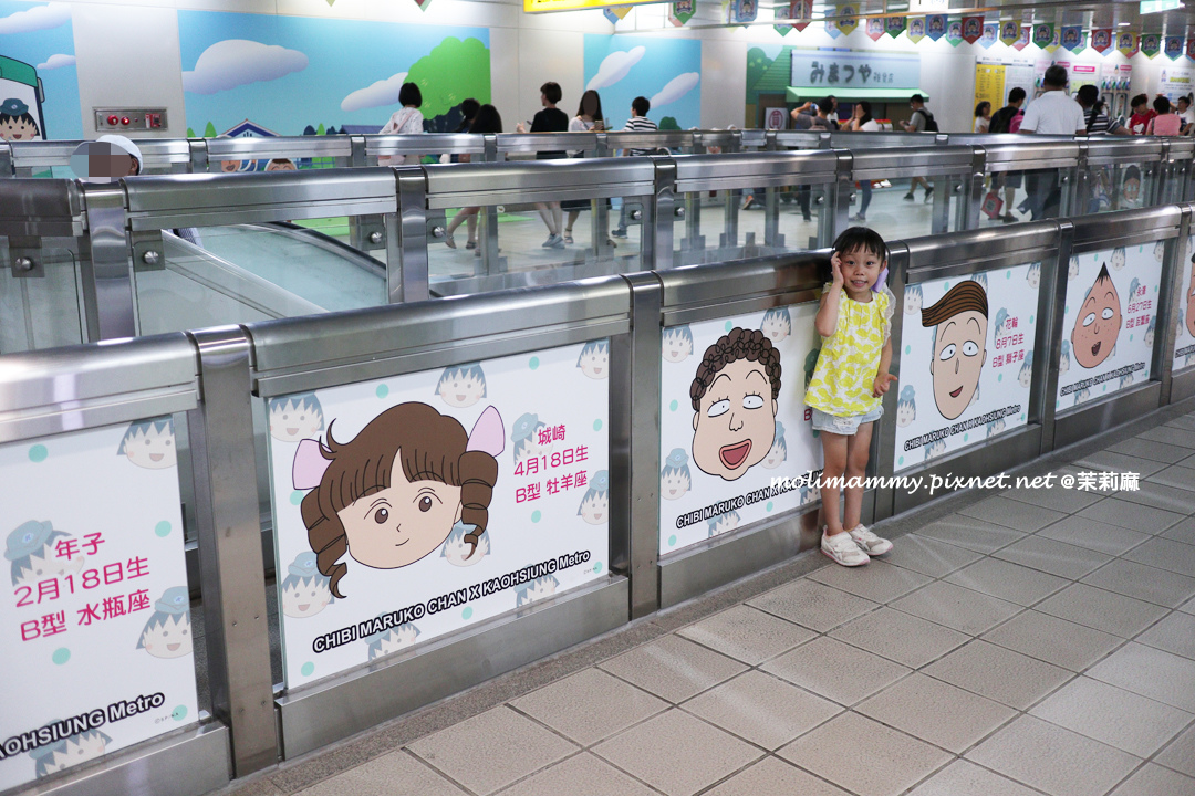 從捷運上一下車在月台上就可以看到櫻桃小丸子中的角色在迎接,一邊是女生們,一邊是男生們