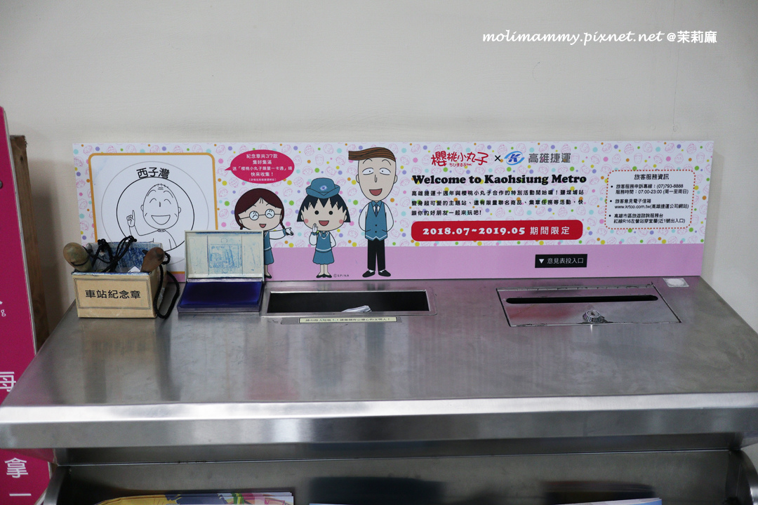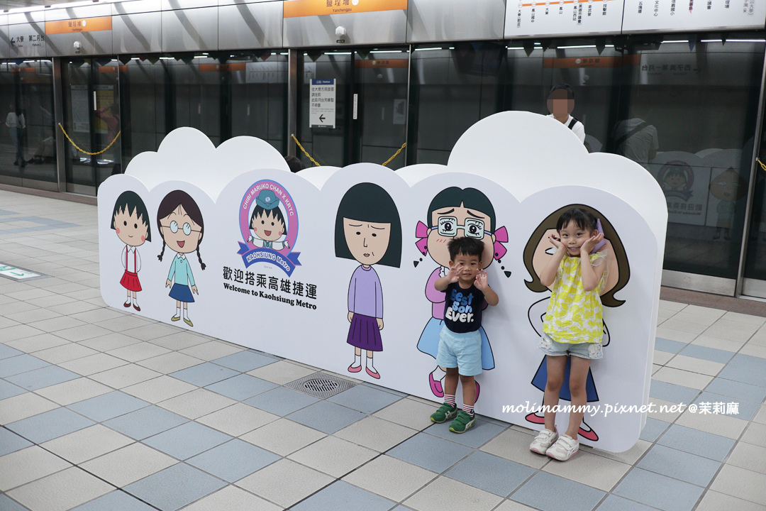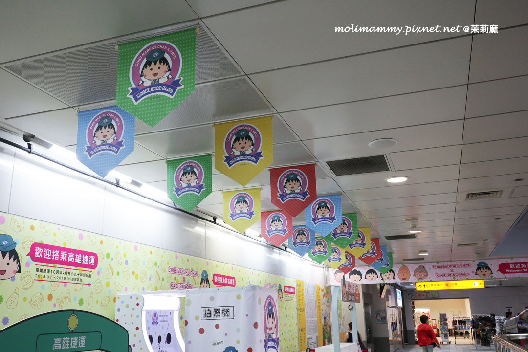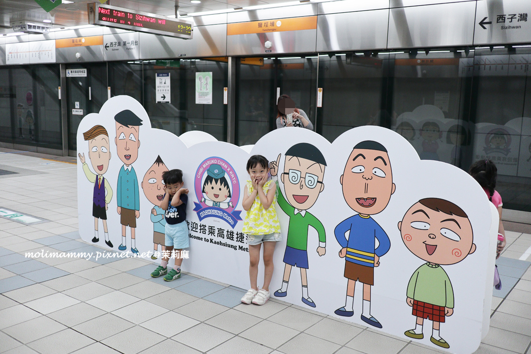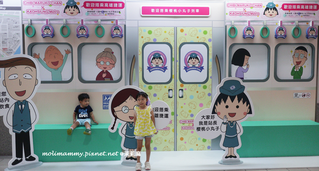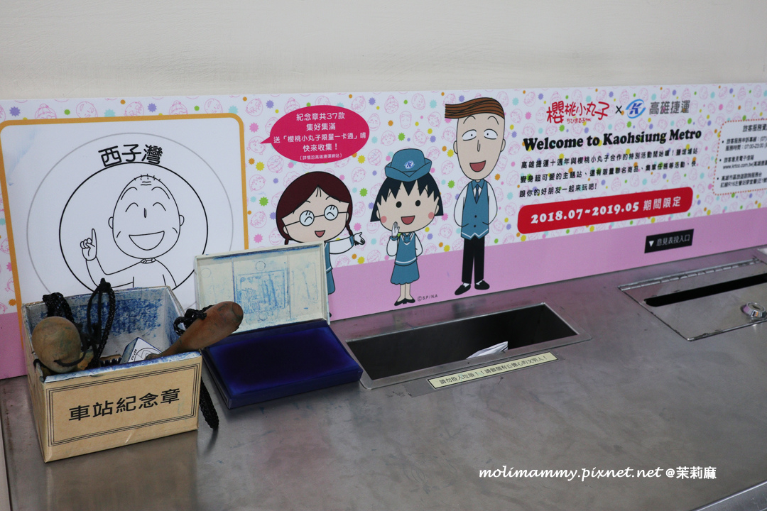 接著,2019 / 5 月前在捷運鹽埕埔站設有櫻桃小丸子主題車站,一進站就能看到滿滿的櫻桃小丸子在歡迎你!而且還設有動畫中許多經典場景整個超好拍