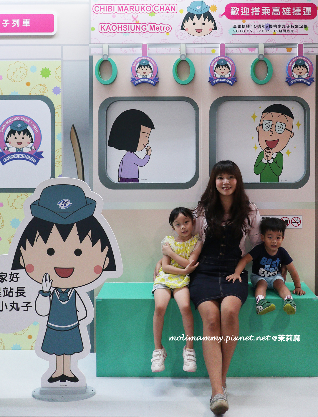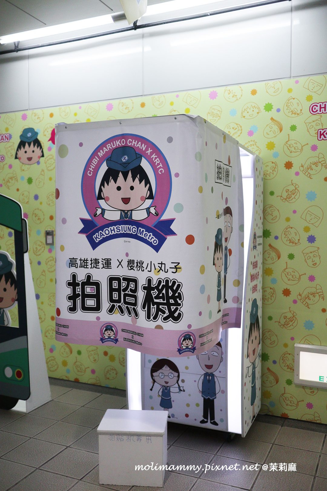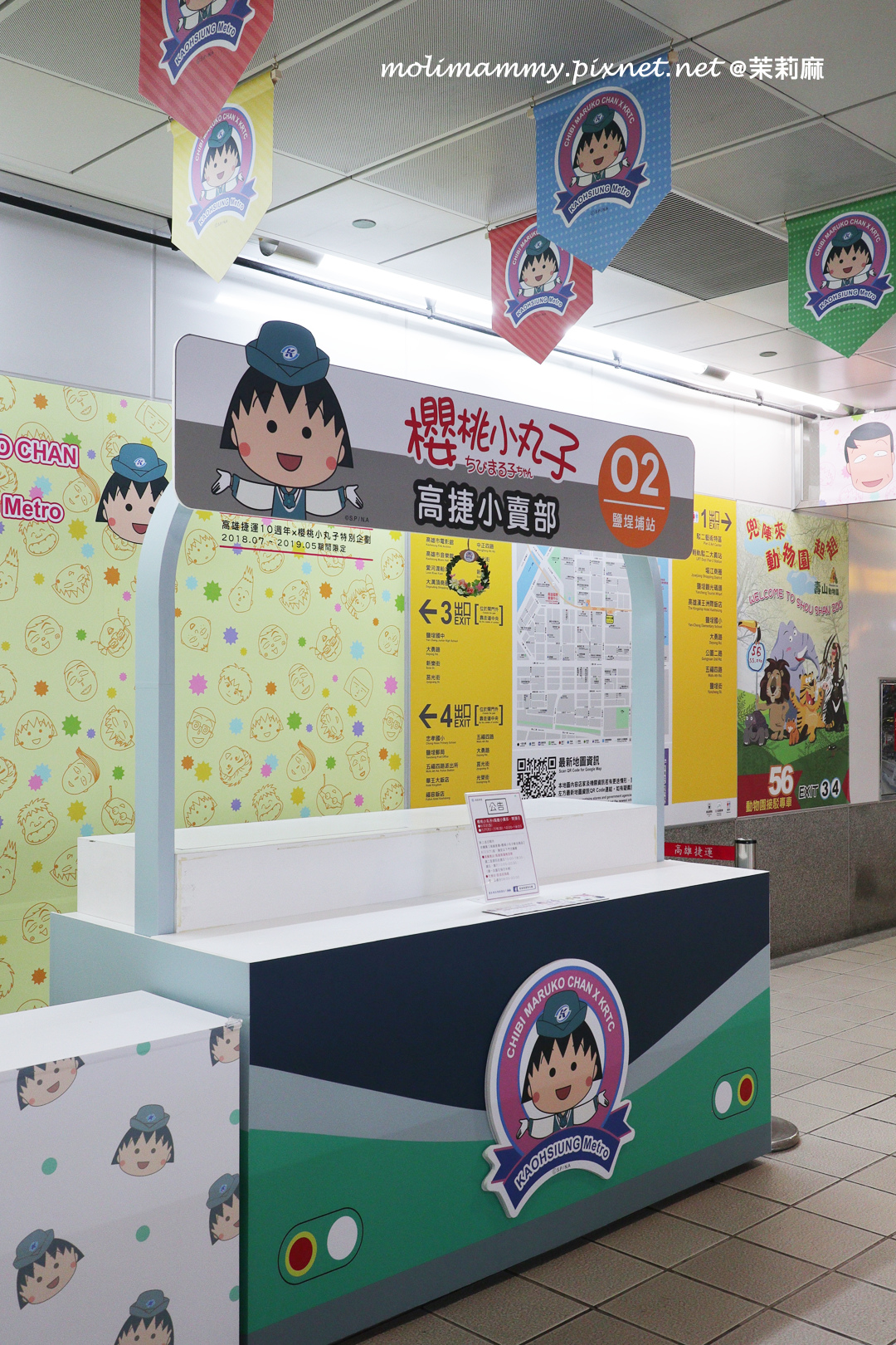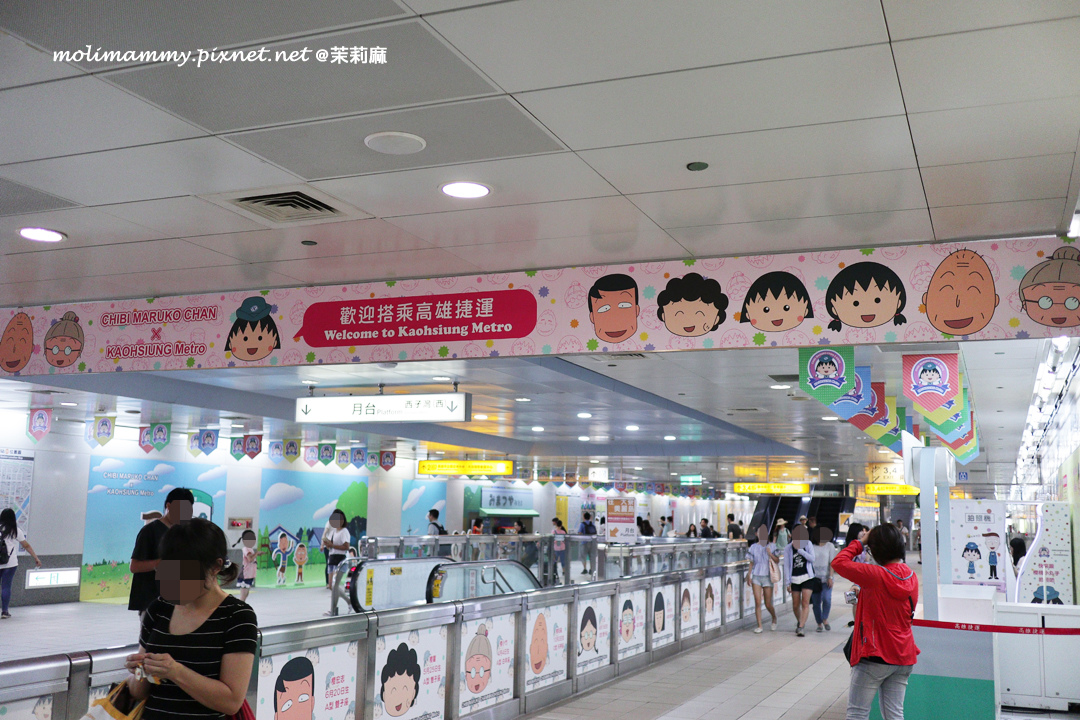 接著,2019 / 5 月前在捷運鹽埕埔站設有櫻桃小丸子主題車站,一進站就能看到滿滿的櫻桃小丸子在歡迎你!而且還設有動畫中許多經典場景整個超好拍