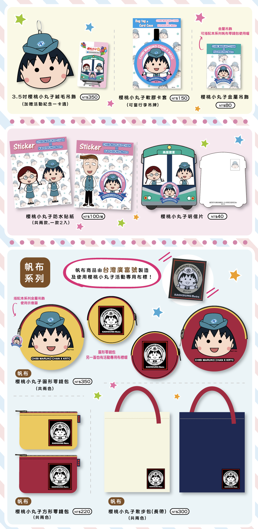 除了快閃店,在 2019 / 5 月前在美麗島站商品館、左營站旅遊諮詢處、★網路商城★ 也都可以買到限量發售的櫻桃小丸子聯名商品