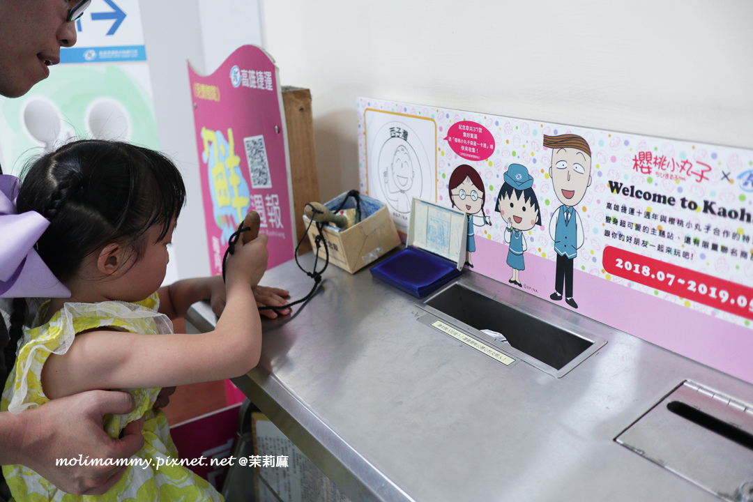 出站後,站外設有高捷限定的櫻桃小丸子拍照機,投入 50 元就可以玩囉