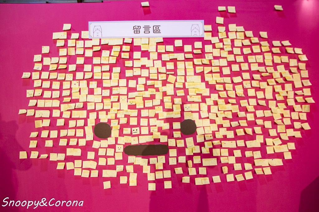 將留言寫在便利貼上,貼在牆壁上一起創作出角落小夥伴粉圓。