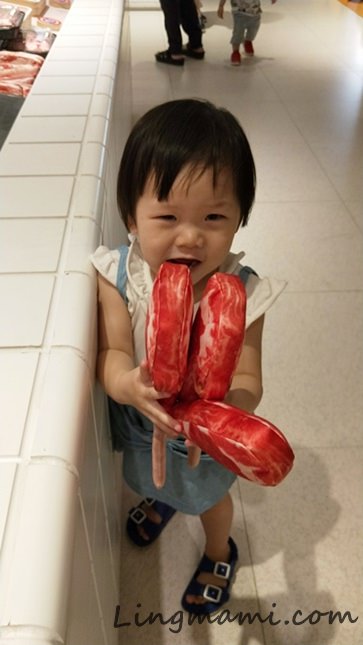 到這一區大家都拿著自己喜歡的肉拍照~淇淇什麼喜歡這牛小排了!