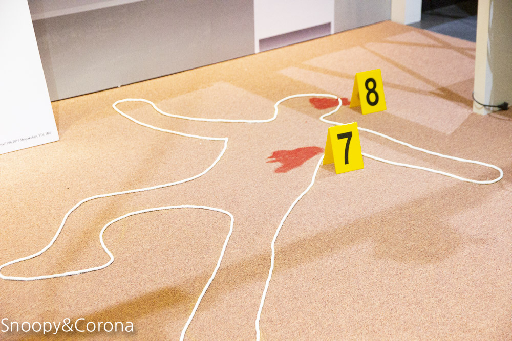 這個案發現場佈置得還真是有模有樣,很能滿足柯南迷的偵探魂