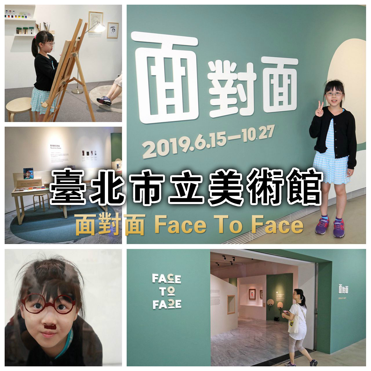 ▼妞妞在兒童藝術教育中心「面對面」教育計畫主視覺前合影,展期2019/06/15~10/27
