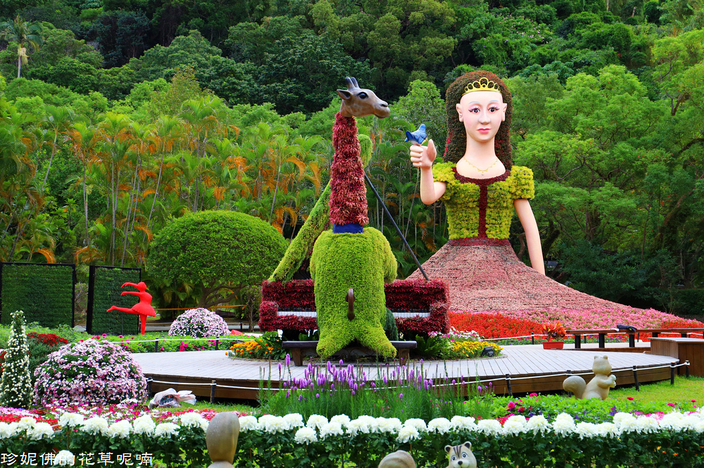 本區以美聲公主為特色綠雕,在天籟琴師長頸鹿伴奏帶領下哼唱
