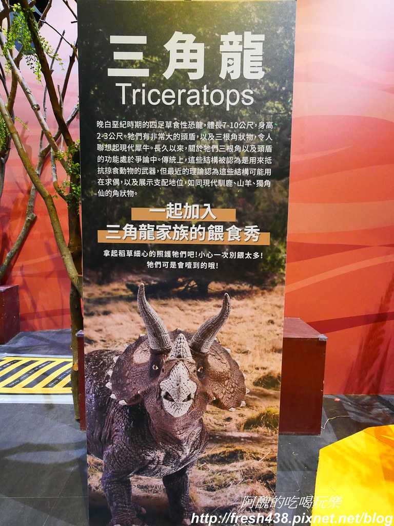 拍完照之後,順著走道前往三角龍餵食區,