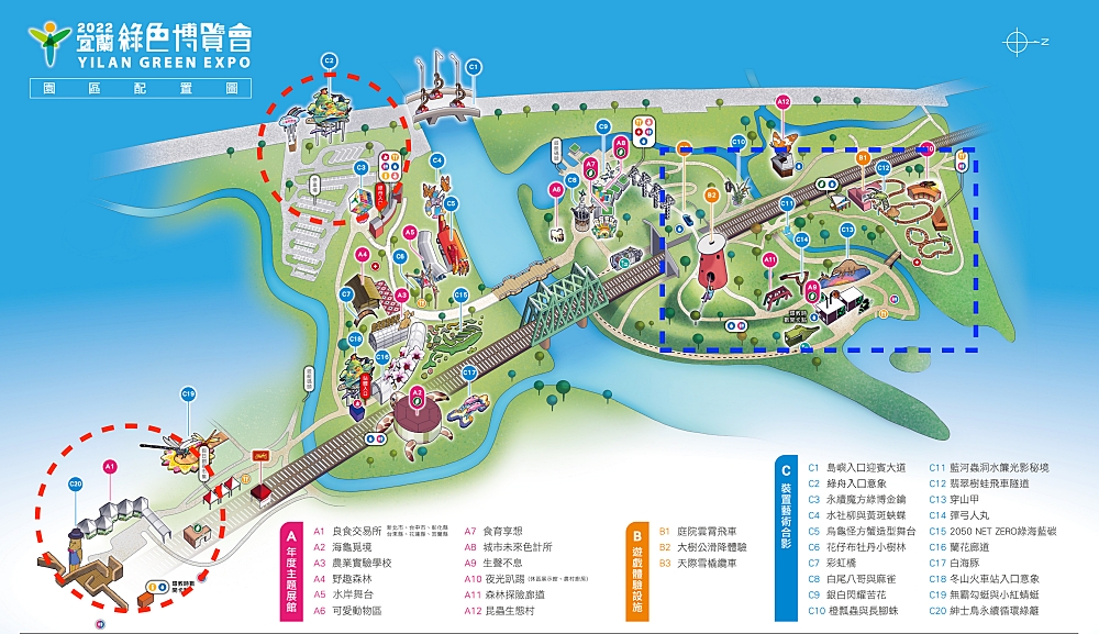 2022宜蘭綠色博覽會入口有二個(紅圈圈)。