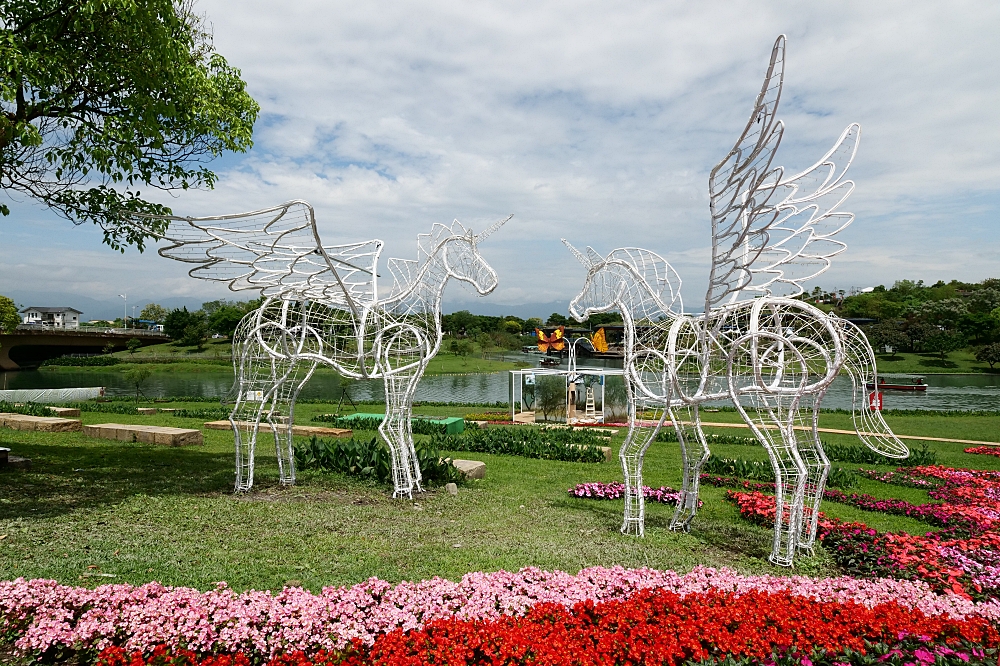一進入宜蘭綠色博覽會園區的兩匹飛馬