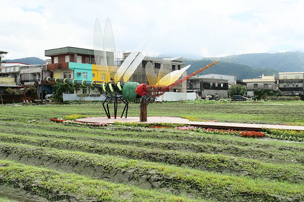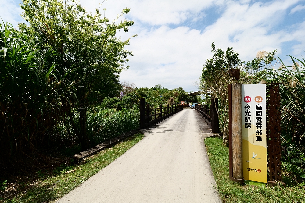 這裡的田裡也種滿了小花,鐵路下方也就是著名的「冬山溜滑梯」,比正門多走三百公尺左右而已。亮點一:野趣森林