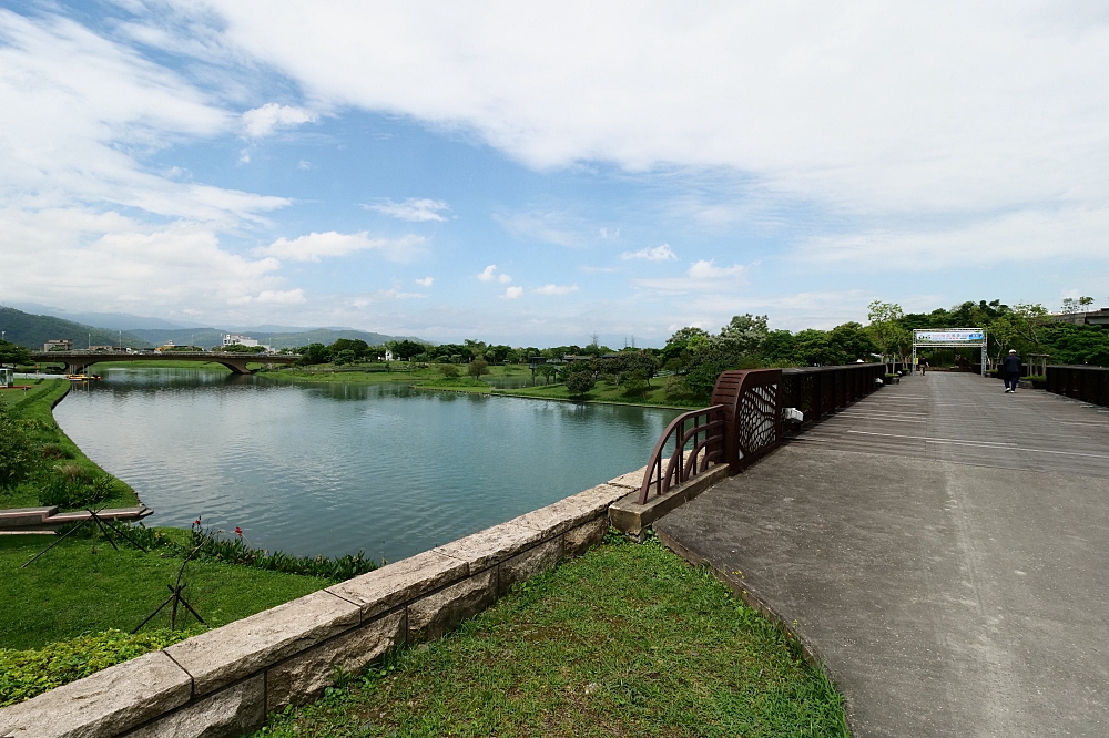 冬山河岸,平靜的水流+平坦的草地+晴朗的天空,怎麼可能不出來走走!