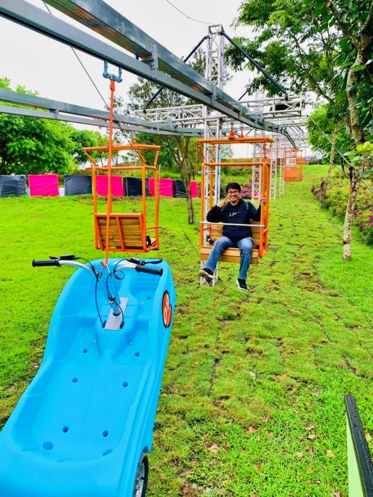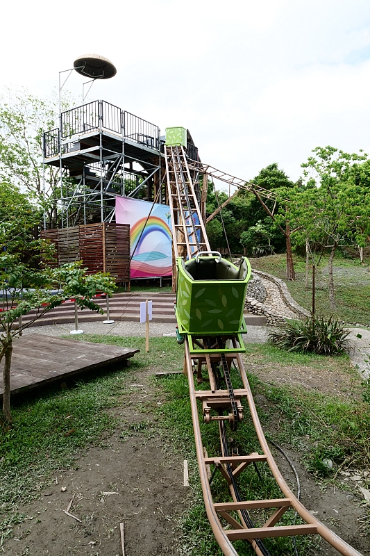 「庭院雲霄飛車」與「雪橇纜車」、「大樹公滑降體驗」組成 2022宜蘭綠色博覽會必玩的三項設施。