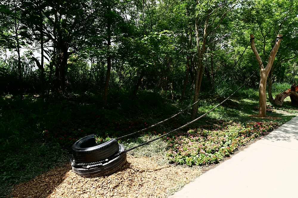 這裡兩旁設置了各樣森林遊戲,耗體力,也燒腦力,絕對比手遊電玩更健康。亮點五:森林探險廊道