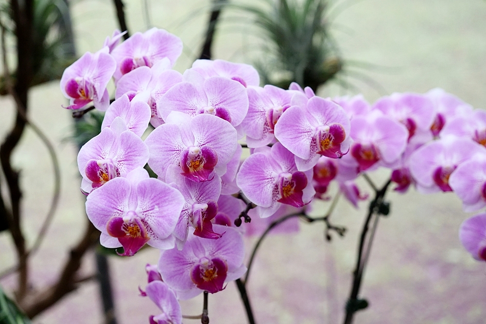 不只欣賞蘭花本身,後面那根枯木也很有味道。