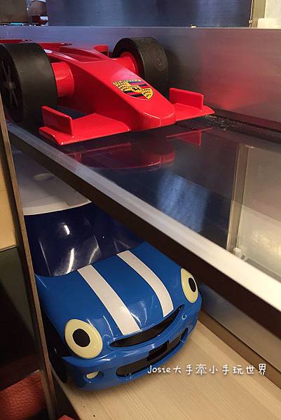遠遠地,就看到蓄勢待發準備出任務的二台車子啦~(共有上/下二條食物輸送帶)