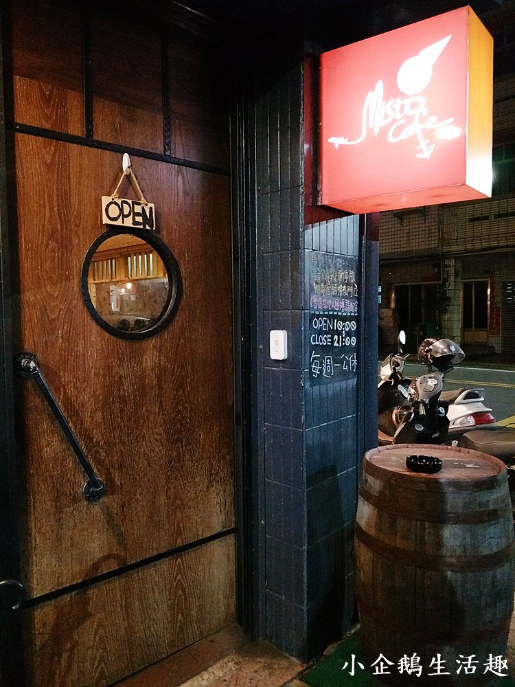 Misto Cafe門口挺有特色的,外面有一個木酒桶,又是木門設計,木門上還有一個圓形的小孔可以看裡面,感覺像是要進入哪間酒吧,會不會一開門有一堆海盜啊!!