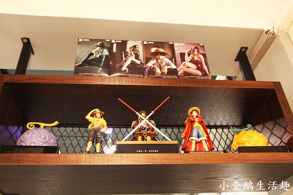 2樓的座位區挺不錯的,若是人多也可以包場使用,每個櫃子內也都有劇情的公仔,是航海王迷一定知道演的是哪一幕啦!!都是超經典的畫面呢~