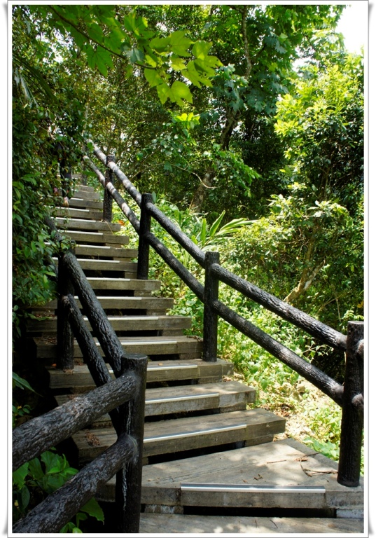 飛龍步道階梯不算陡,木頭材質的步道也挺好走的,一路上都是綠樹遮蔭,雖然天氣燠熱,但覺得挺舒爽的。