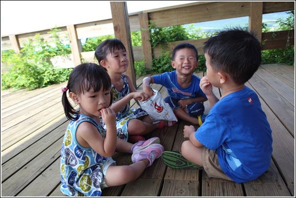 大夥就坐在涼亭裡吹著涼風,喝口水,吃點心,歇歇腳,賞美景~