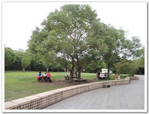 把車停在公園附設的停車場,我們直接入場到自然中心的前方草皮,這裡有棧板和桌椅,似乎就是為了讓人野餐之用。