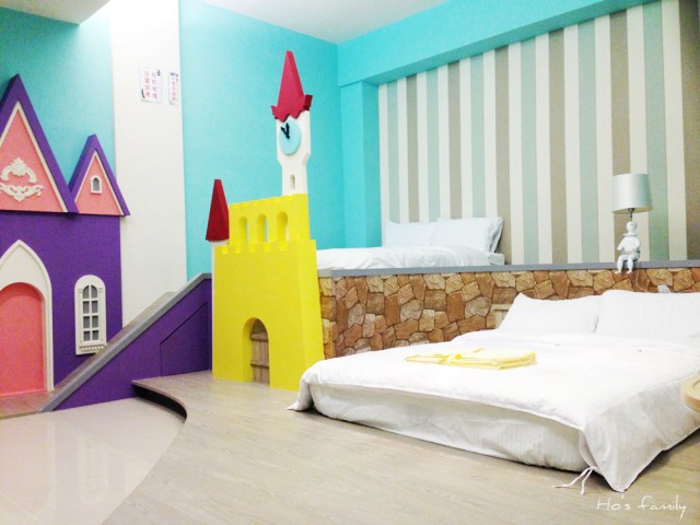這是我們今晚入住的房型「愛玩蜂」,彩色繽紛的城堡讓人好驚艷,雙人兒童床底下還設置了一座溜滑梯,不只小孩興奮連我這個大人看得也好心動!