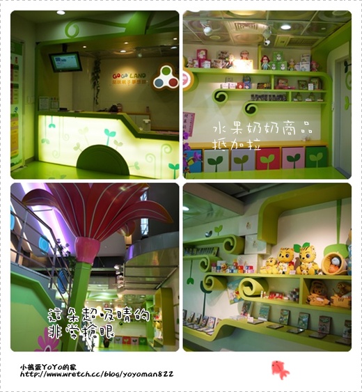 櫃檯處陳列許多水果奶奶及其他人物的周邊商品