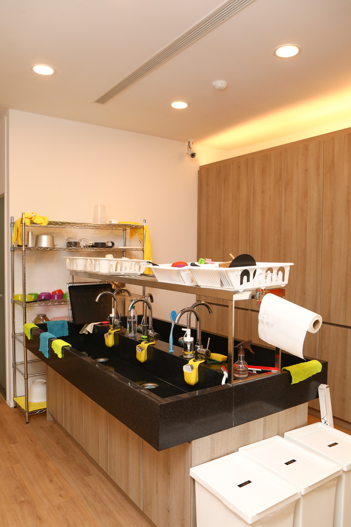 洗滌區旁邊的咖啡、茶點都是可以讓客人隨意取用!超級大心
