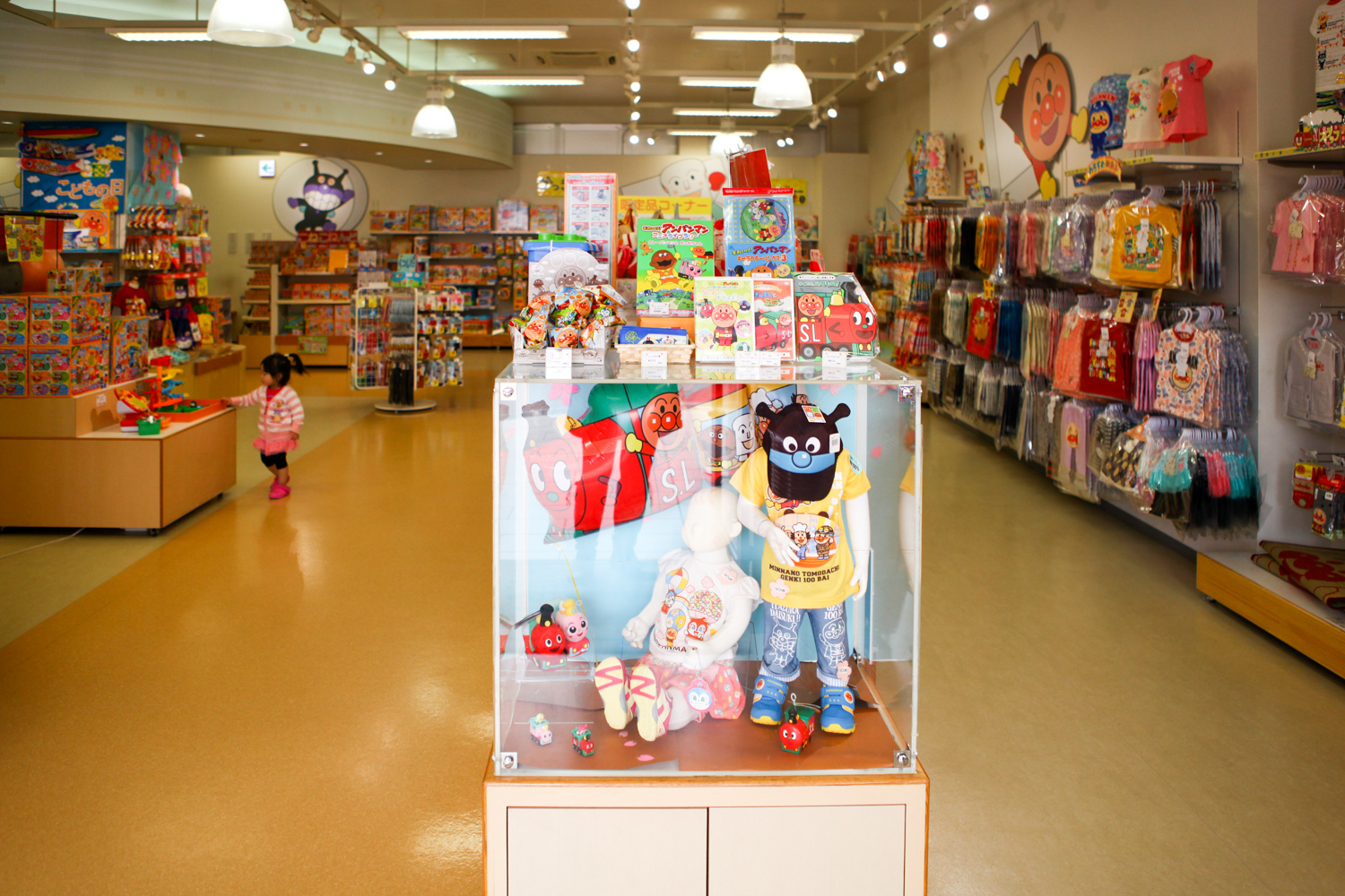 商品販售區內還有幼兒區,播放著麵包超人的卡通