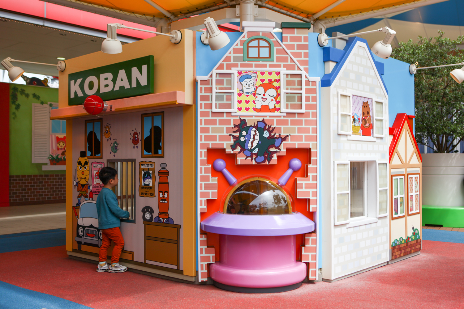 戶外遊樂設施這個非常有趣,將麵包超人卡通中的場景放置在此!有監獄、還有餐廳等