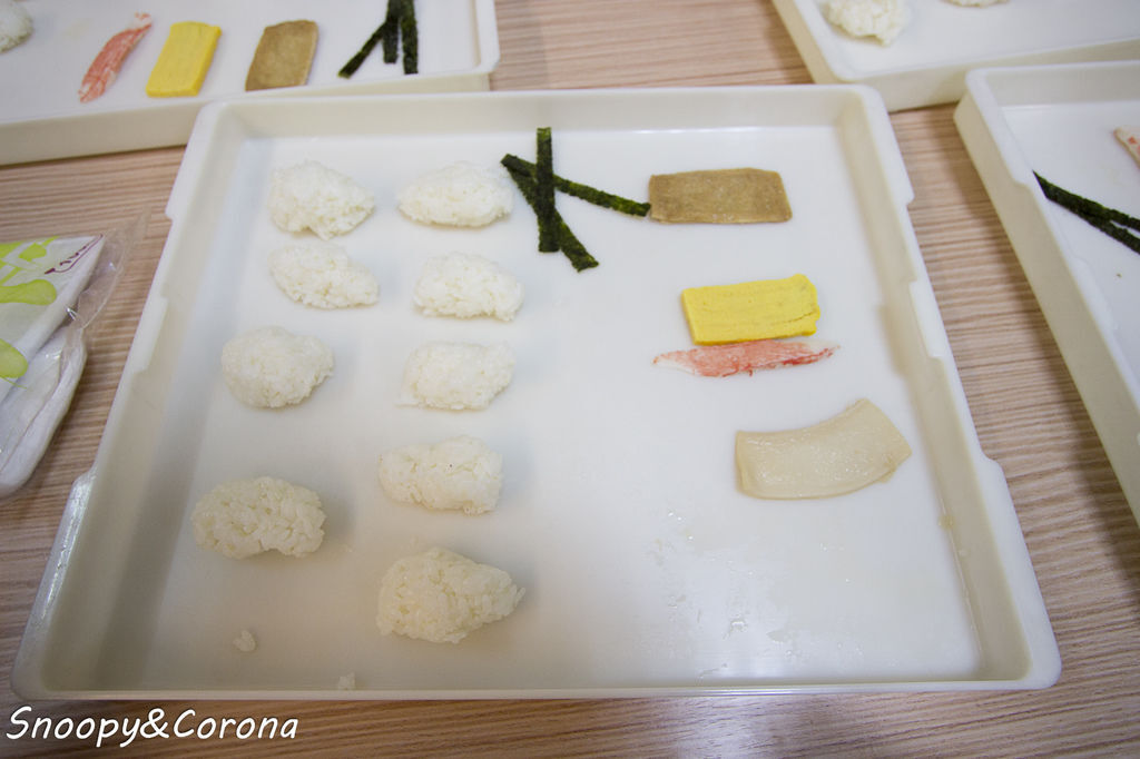 發給每人一份壽司手作材料,有醋飯及會用到的食材(廢話)