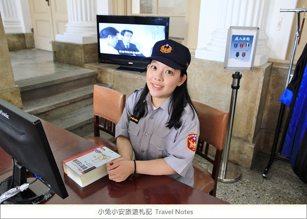 其中有個法庭裡頭開放制服免費體驗,有法官袍、書記官、警察..等等,但最順我的眼,當然是警察的制服啦~