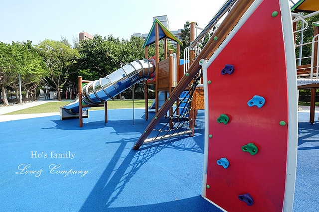 除了兒童遊戲區也有直排輪場、羽球場、大草地,以及生態池做成的河流與親水區,