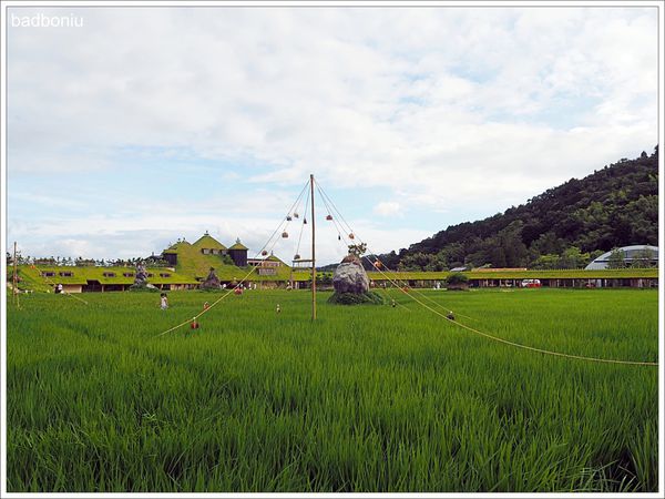 穿過主建築後整個壑然開朗!後面居然還有一棟造型更奇特的建築物及一大片綠油油的稻田ㄟ!