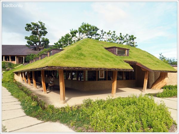 「ラ コリーナ 近江八幡」的建築物上都是滿滿的綠草;因為「La Collina」是義大利文「小山丘」的意思,所以不僅屋頂是小山丘的形狀,連上面也全部都種了綠草,看起來真的好可愛!