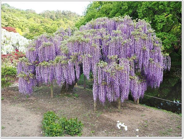 旁邊有一些比較小棵的紫藤,水中的倒影好美~