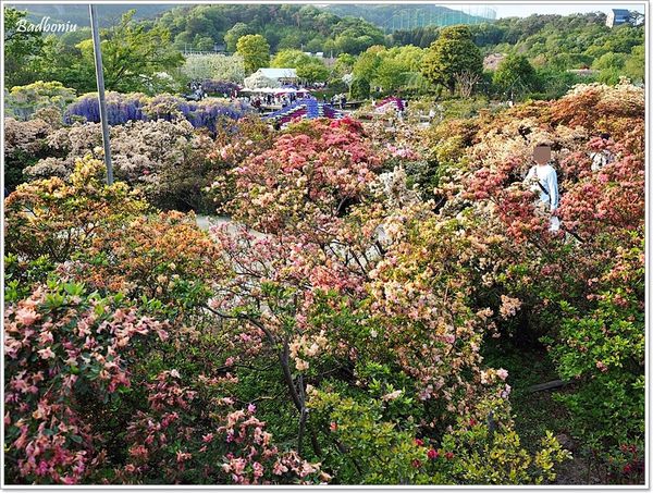 上面才說一輩子可能只來這一次,今年就跟著媒體又來參訪一次,這次可是大白天來,也意外的看到裸體的紫藤XD,花卉公園的大門原來長這樣,門口就是大停車場,只不過在紫藤季期間根本不可能開車子進來呀! 大門一進去,有販售花的種子跟盆栽,愛花花草草的人一定會失心瘋